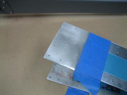 First thing, I need to bevel the outside edge of the counterbalance skin to allow less of a bump as the leading edge of the rudder skin jumps from the spar to the counterbalance skin. I clecoed the rudder skins and counterbalance skin together and drew a line on the counterbalance skin, forward of which I don’t want any beveling or scuffing or primer.