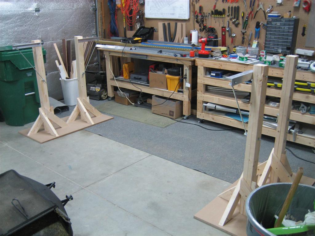 I know a lot of people have made a lot of different kinds of wing stands, but I saw Ethan’s and decided I wasn’t going to re-invent the wheel. It’s a good, adjustable system. You can find a couple pictures of his stands here and here.