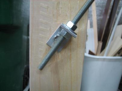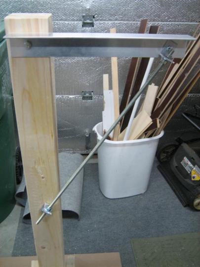 And an even bigger close-up of the mechanism. Since most of the force will be down, I kept the threaded rod long and mounted the post bracket 18" below the main bracket.