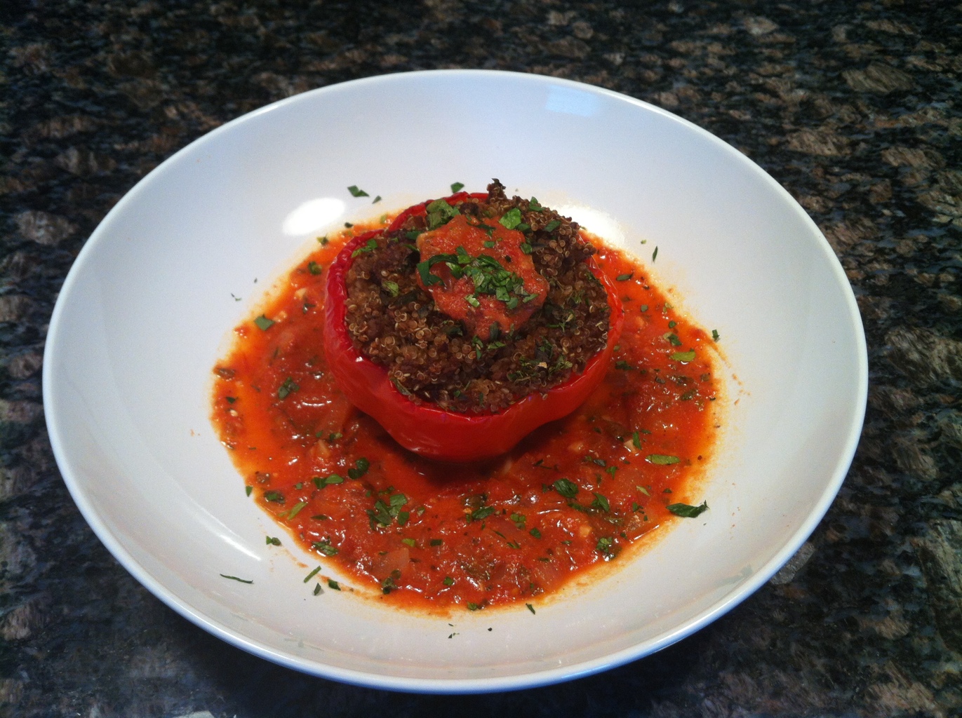 This last step is for some sauce. The original recipe didn’t say what to do with it, so we just spread it around the peppers. Delicioso.