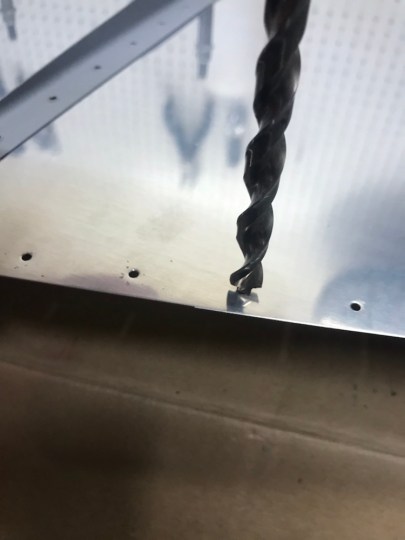 So I grabbed my freshly-drilled right rudder skin and deburred all of the holes I knew I could dimple with the (quiet) hand squeezer.