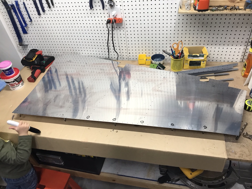 Also, 16 more rivets drilled out of the rudder tip rib. I need access below the tip rib to buck the new rudder skins to the counterbalance skins.