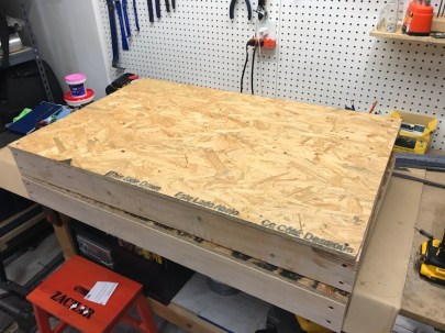 Finally, with skin dimpling coming soon, I built a couple c-frame tables. Instead of making the fancy one with the slot for the c-frame to slide into, I just made two bigger ones.