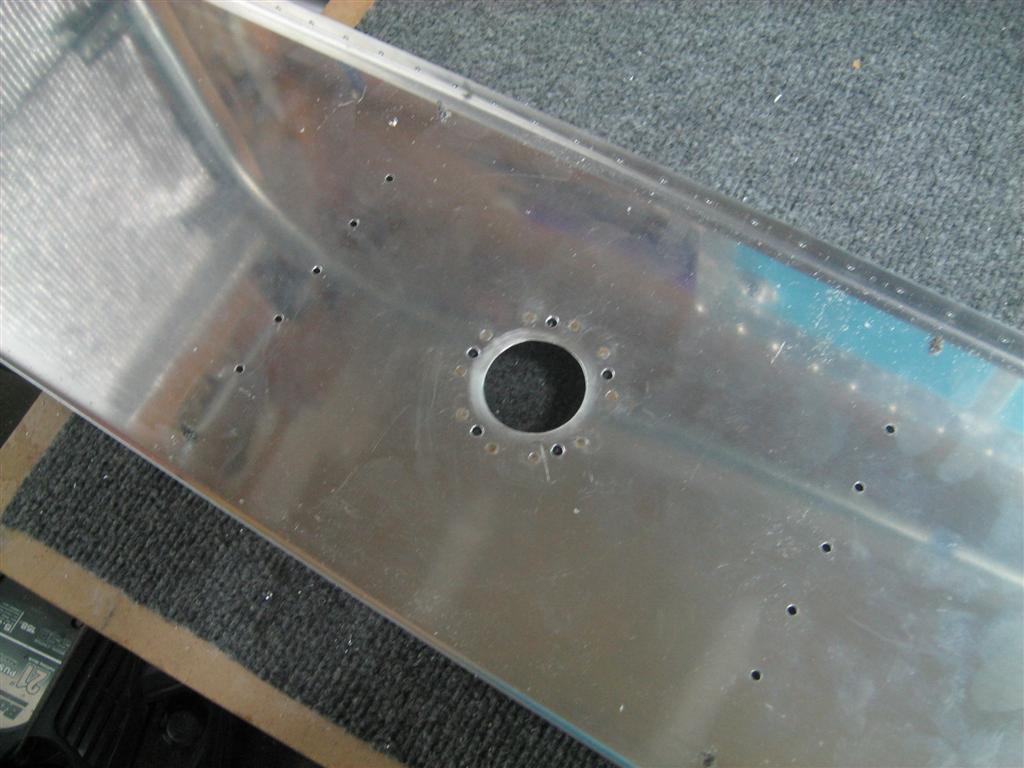 Next, I used a 1 inch hole saw to cut an undersized hole (didn’t have a closer size) and spent a good 20 minutes with the dremel and a rotary file to get a nice round hole for the sender.