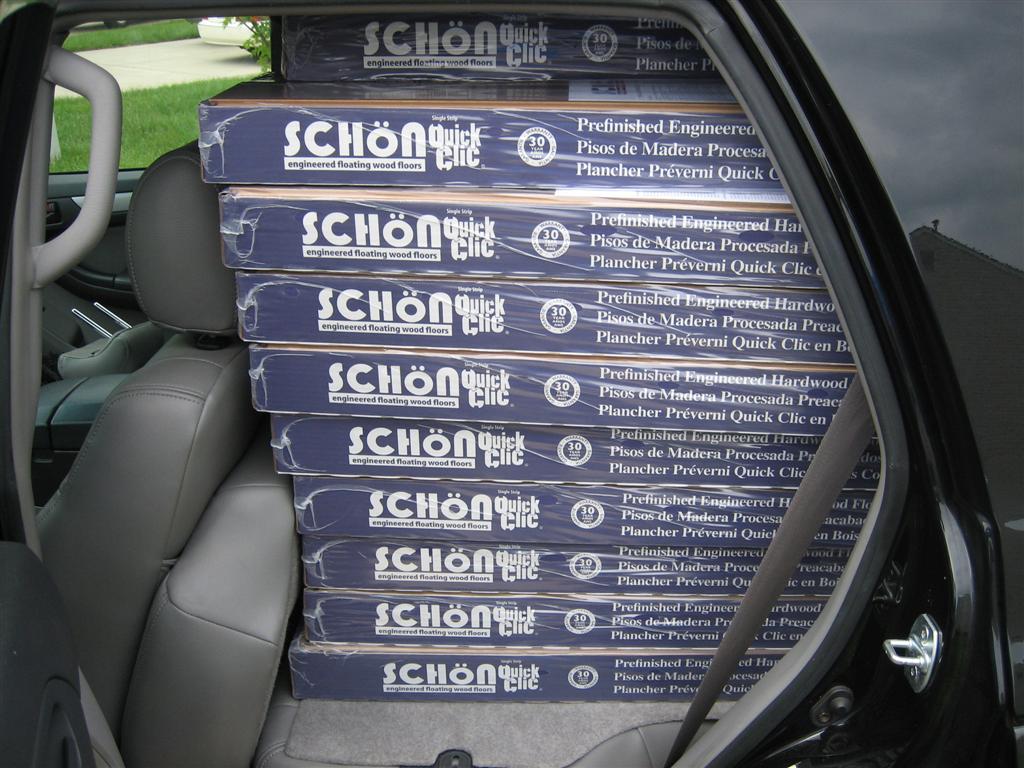 Hey, I picked up the wood floors today. The guy helping me load them into the 4Runner made a joke about not being able to fit them all into the truck. It was only funny because they fit exactly. I could not have fit one more box.