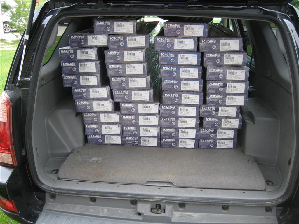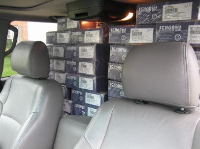 After removing 9 or so boxes (30 lb each?) from the back. 38 left. (Arms tired...)
