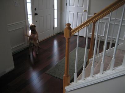 Here's the foyer being claimed by Ginger. (She is also making sure none of the neighbors enter into HER cul-de-sac.)