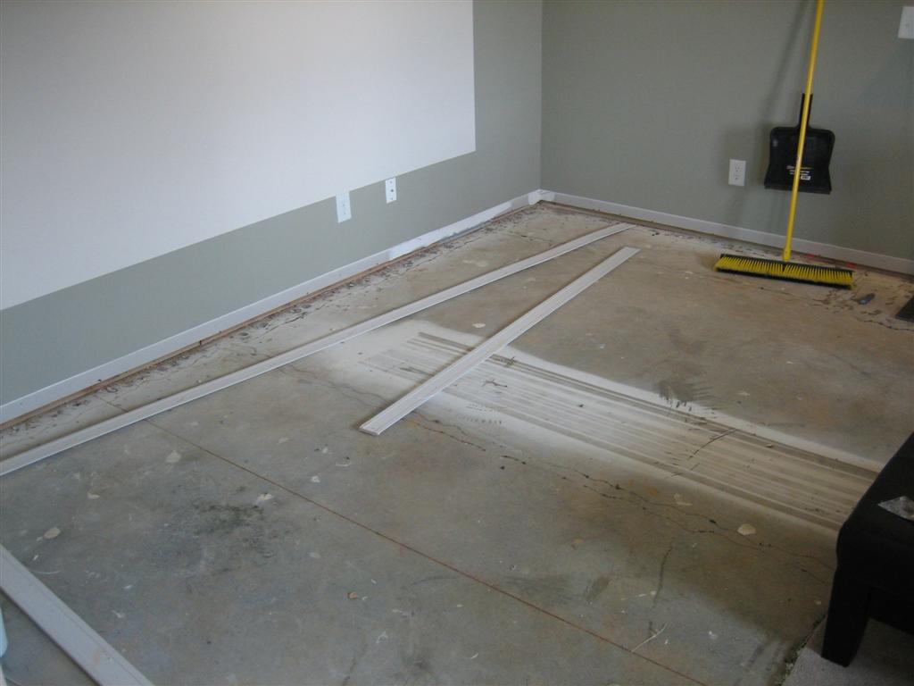 After pulling up the carpet and padding, I went to work on the trim and tackstrip.