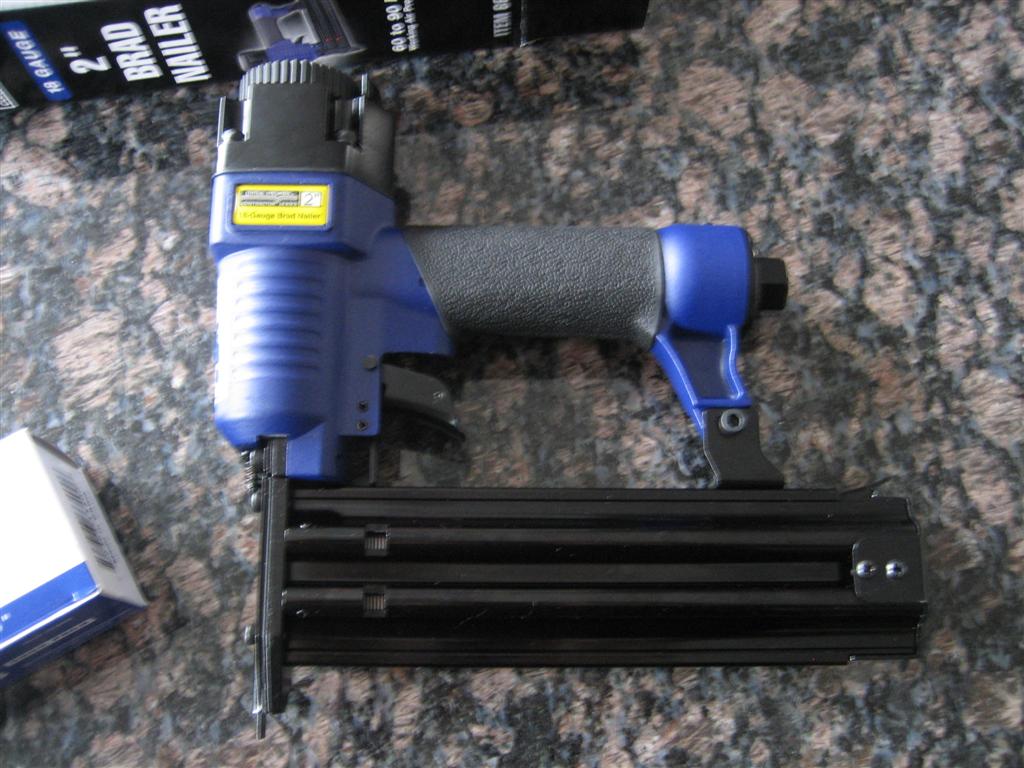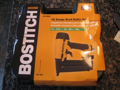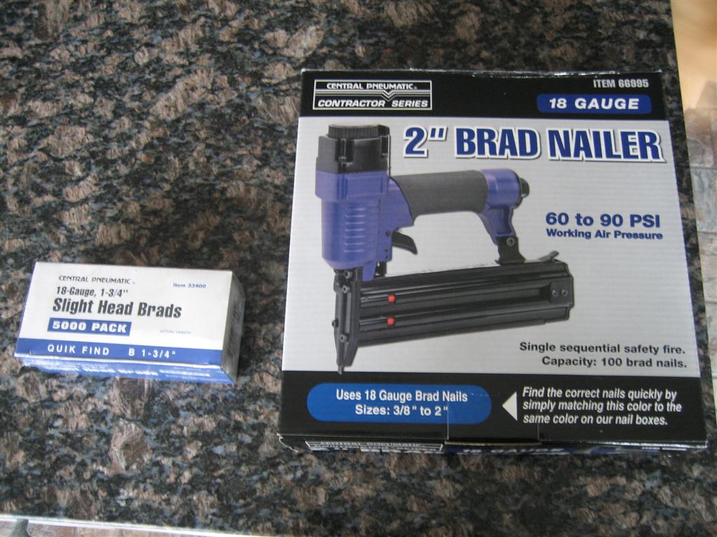 I returned the original unit to Harbor Freight and headed over to the Aviation Department (I mean tool section) of Lowe’s, and picked up this nice Bostitch brad nailer.