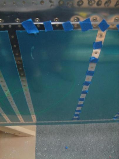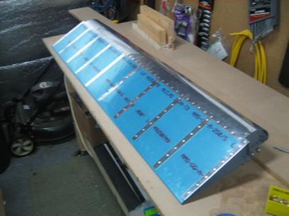 Next, I was trying to figure out how to line up the aileron, so instead of copying some other people’s cleco and a straight edge trick, I decided to do it by the book. Grab a straight piece of wood, drill the holes for the tooling holes in the wings, then line up the aileron with two tangential lines.