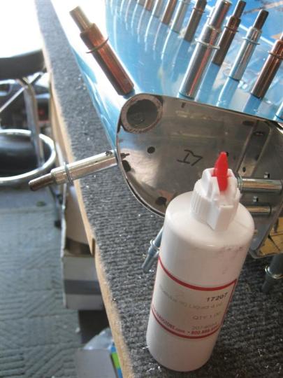 Van's tells you to prime the inside of the pushrods, too. So I poured some in there, then tried to pour it out. None came out until I installed it here, and some seeped around the edge of the pushrod fitting. Oops.