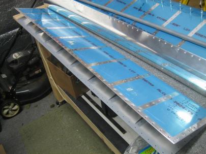 4 hours total today, 3 of which were on the ailerons, 1 of which was for the flap brace. 29 rivets set, one drilled out. Yahoo!