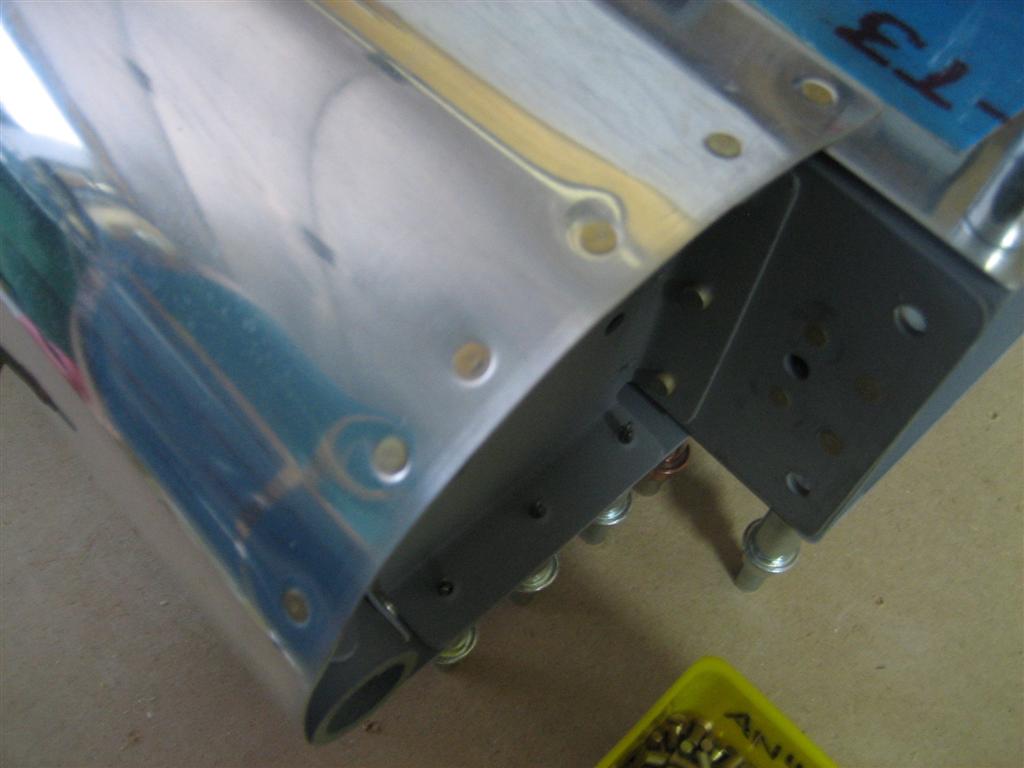 I don't think I got the edge of the spacer just right when deburring. I might redo this. (This was also the only place I had to make a washer substitution. I used a skinny washer to the right of the aileron attach bracket.