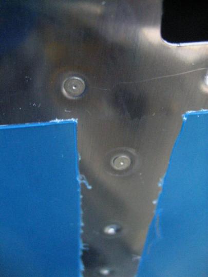 The denting between the bottom two rivets is really not that bad. And, it's on the bottom of the right HS. No one will look there. Unless you are reading this, and come to see my airplane, and want to see the dent on the bottom of the right HS. Damn you.