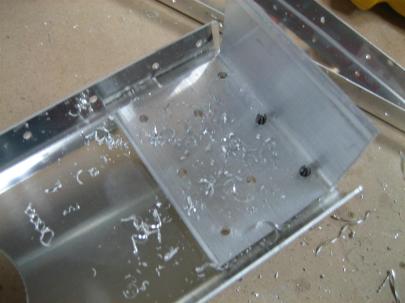 Then, I marked and drilled 5 of the 6 rivet holes, along with the center hole, which is the pilot hole for the 9/16″ hole that the flop tube fitting will fit through.