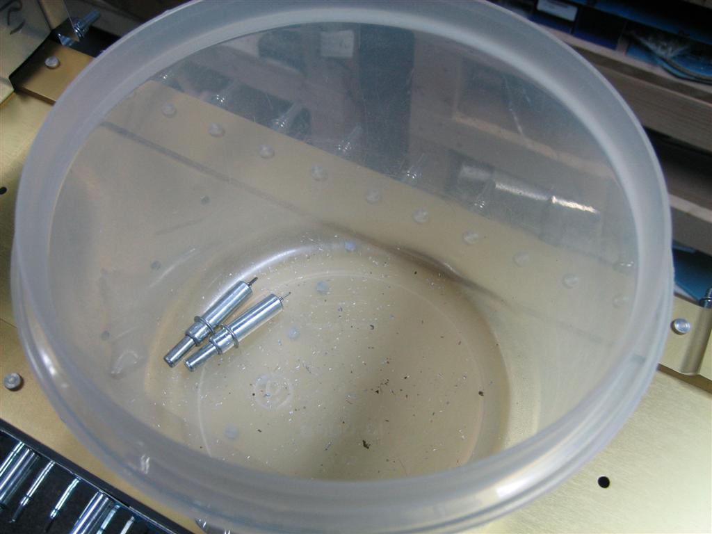 Anyway, I emptied them into my (now empty) silver cleco bin (an old tupperware container).