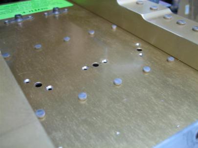 Then, I flipped the spar over and did the bottom flange. Also, there are some access panel nutplate that get attached now, too. I went ahead and countersunk for those attach rivets, also.)