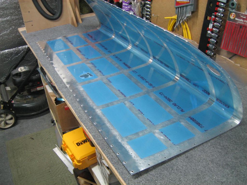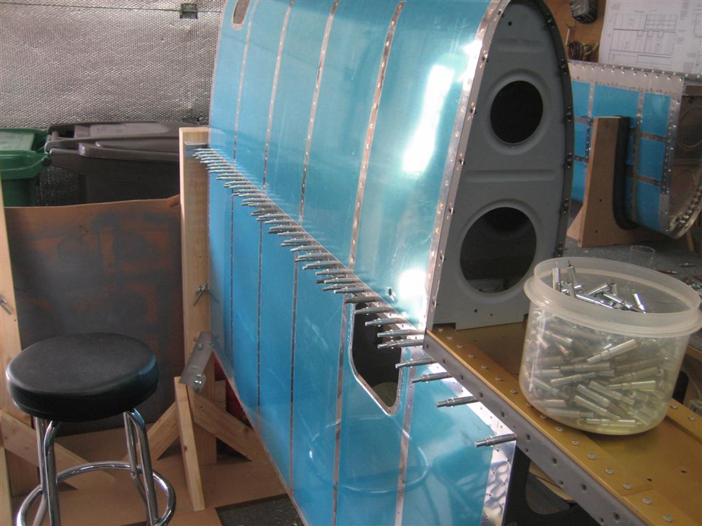 3.5 hours of countersinking and riveting today. 144 rivets, 1 drilled out (the rivet split in two!). Good times.