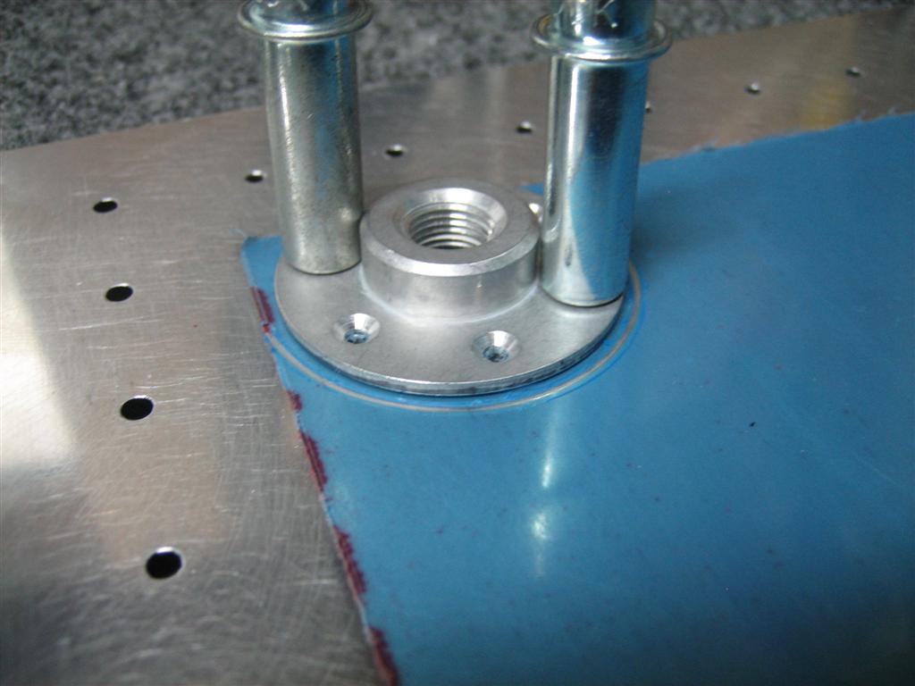 So I grabbed my countersink with a #40 c/s bit, tested in some scrap, and positioned the countersink cage over one of the nutplate attach holes.