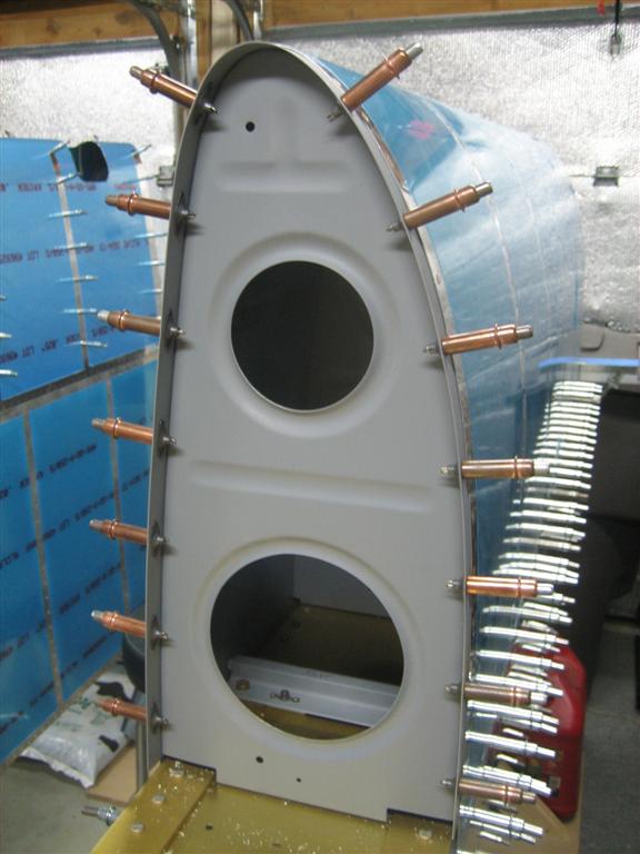 Okay, this is the outboard side. Those two AN426 rivets are just in there for hole alignment. They can NOT be set at this time, only the three on the left.