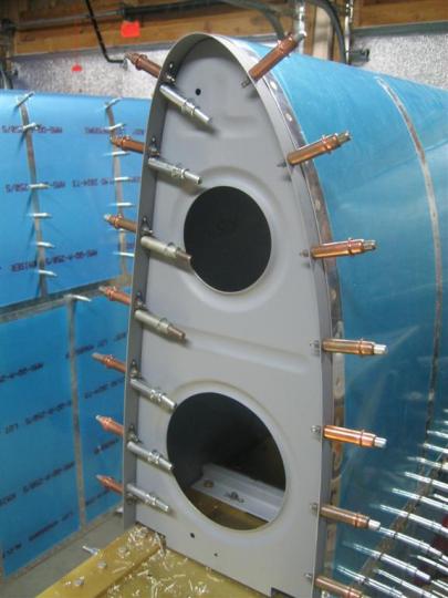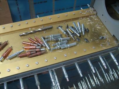 Over there, the three inner-most rivets can be set, along with the two AN426AD3-4 rivets for the K1000-3 nutplate, shown.