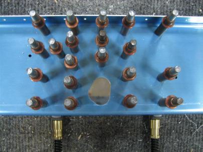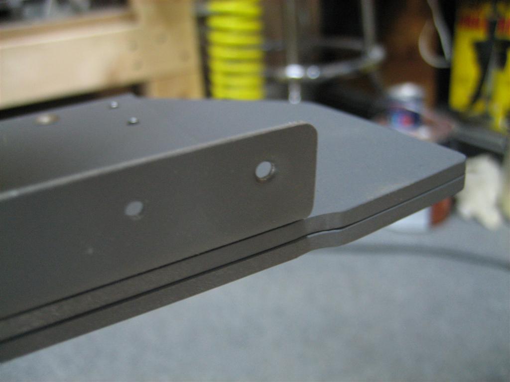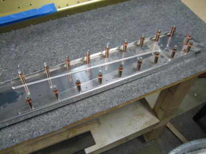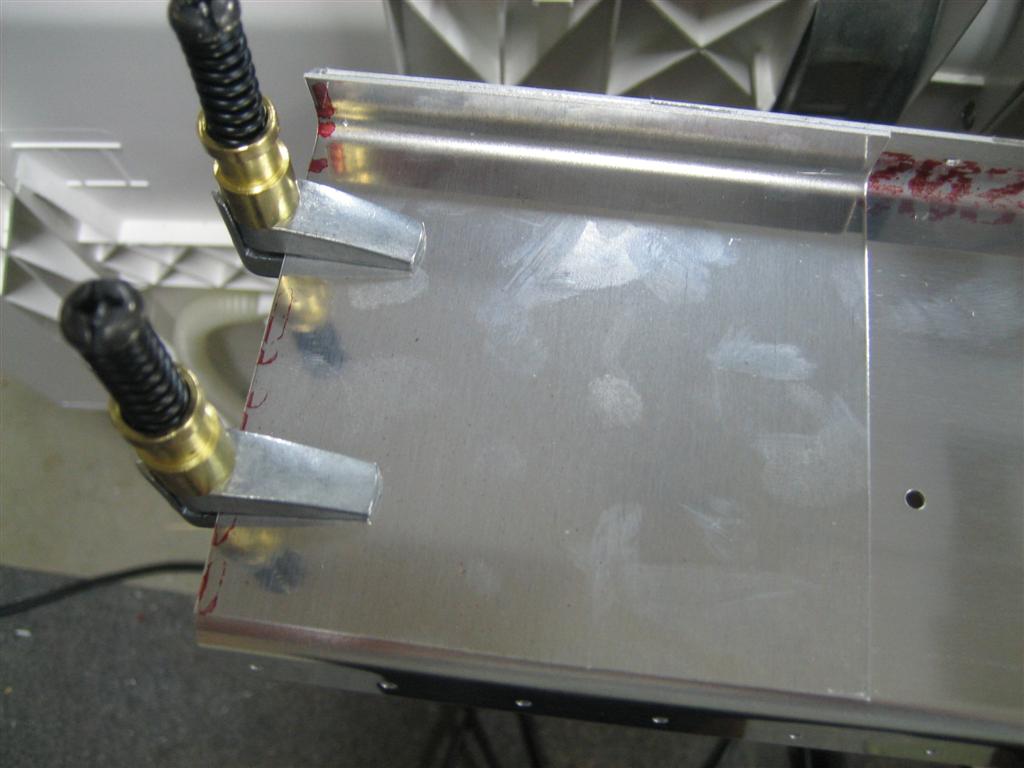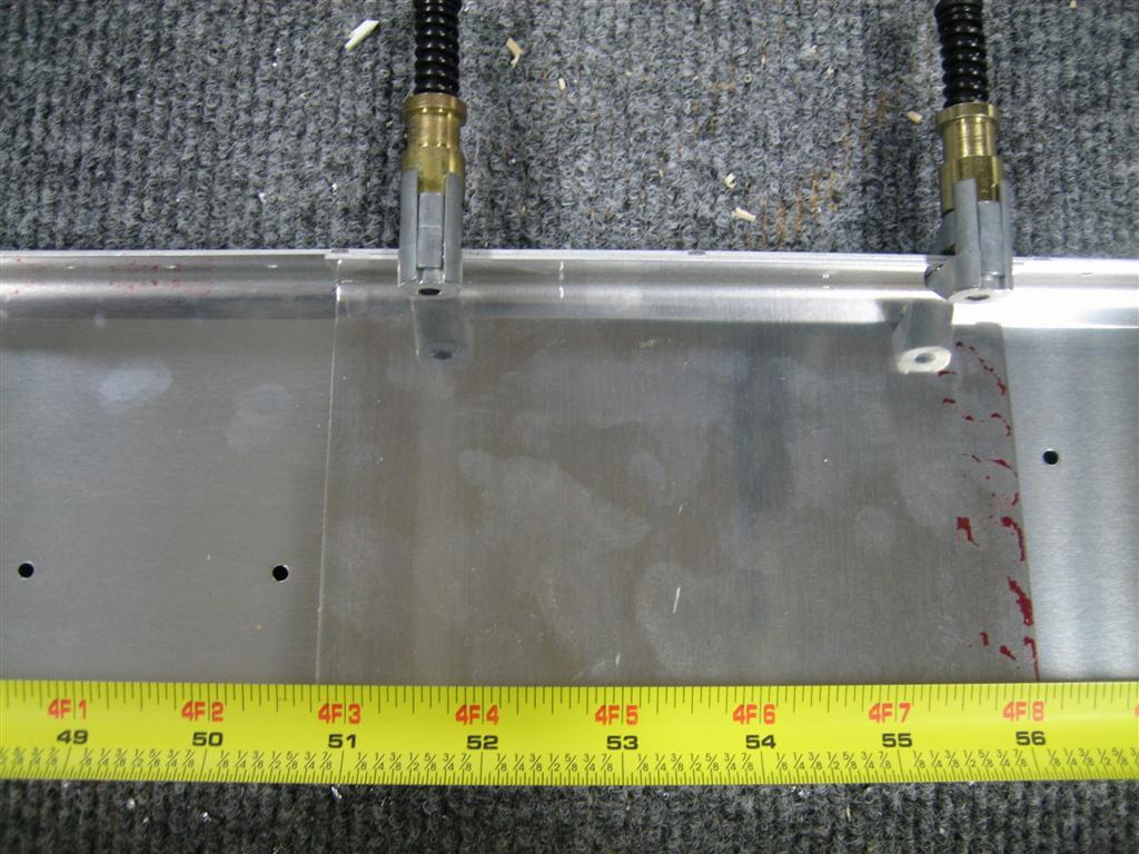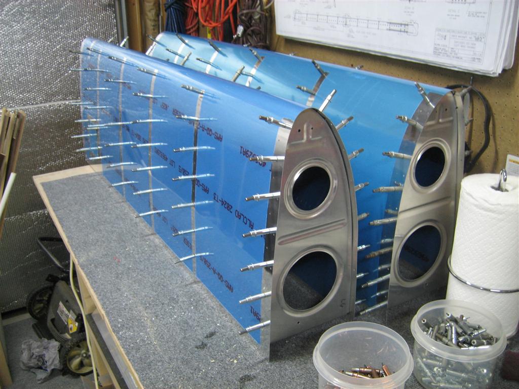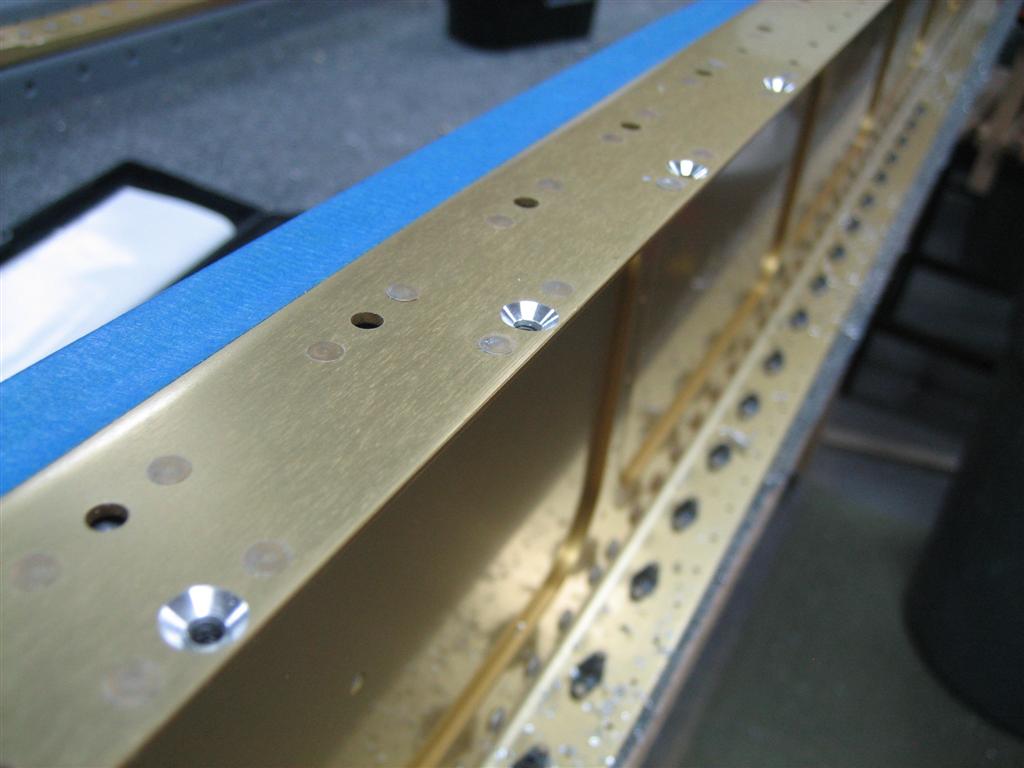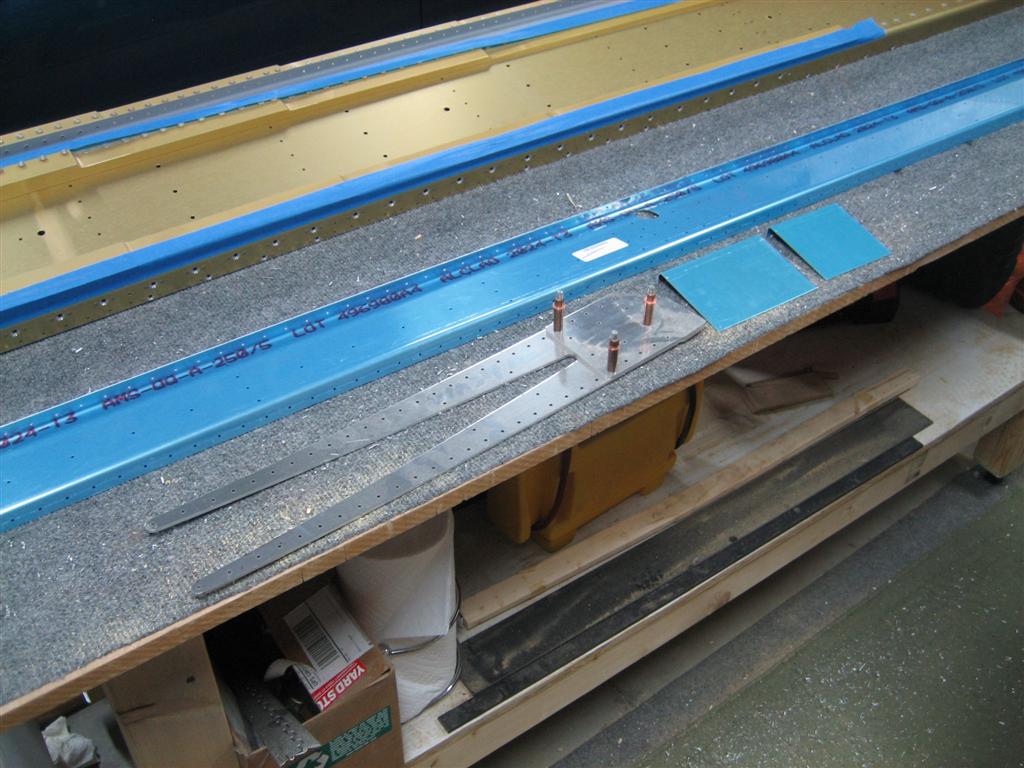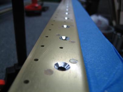 The middle spar area, shown after drilling, deburring, and dimpling the flange area.