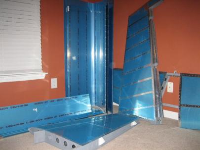 Joe showed up, so we started gathering the left flap parts. Here are the skins, the spar, and some of the ribs.