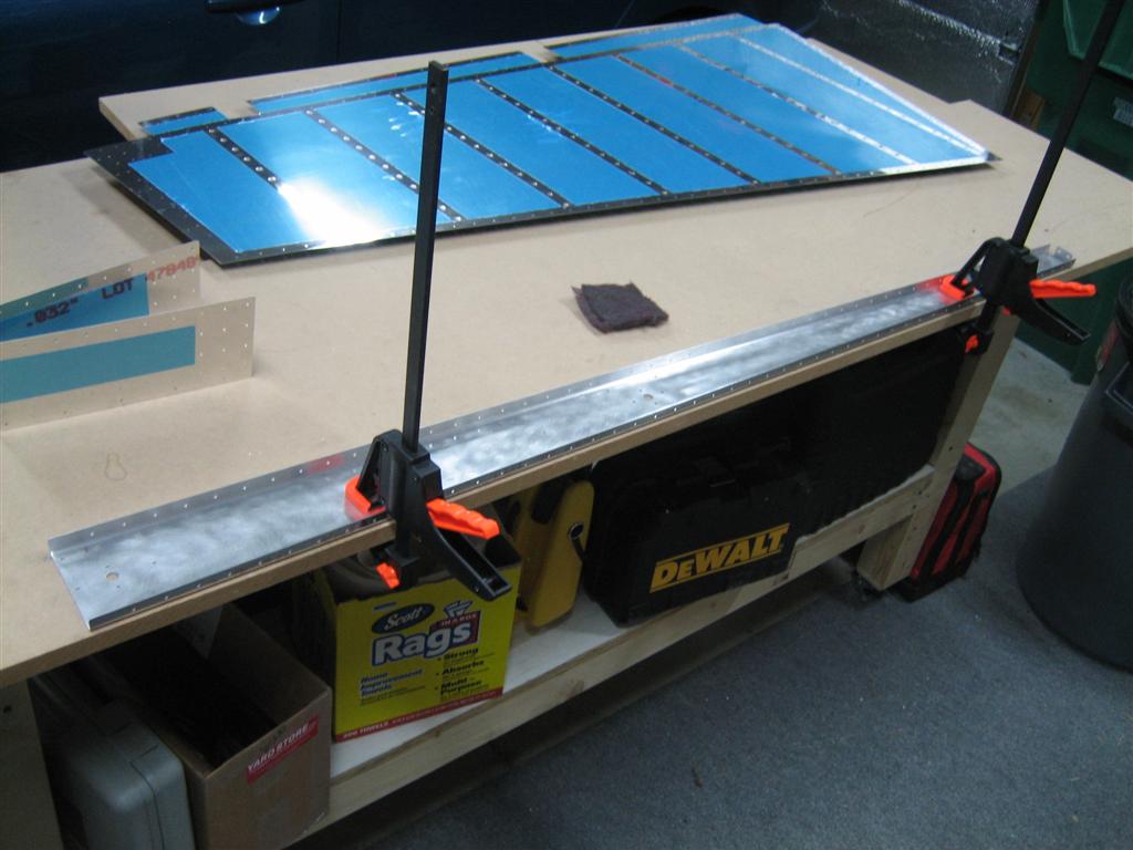 Well, after deciding not to work out tonight (in favor of wine), I made it out to the garage pretty late for some final prep work before riveting the right elevator.