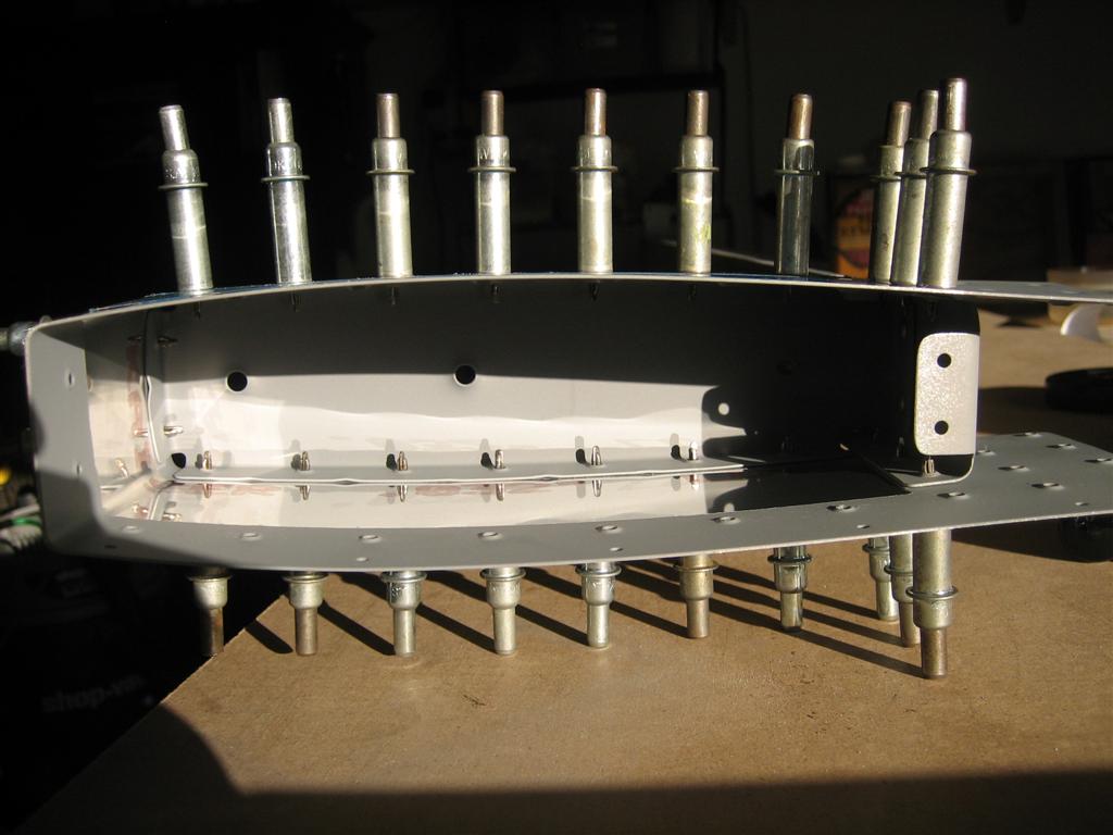 Priming. You can see the two #6 dimples at the top of the left side of the skin. (I'll do the rest later...the rest are all accessible in the future.)