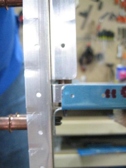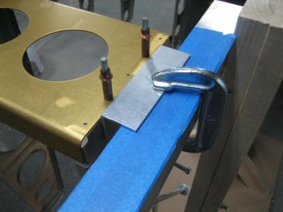 Here, you can see that I am in the middle of moving clecos. The one in the center of the picture gets moved one left (into the marked, already drilled hole), then the one to the left of that gets moved one left, and so on.