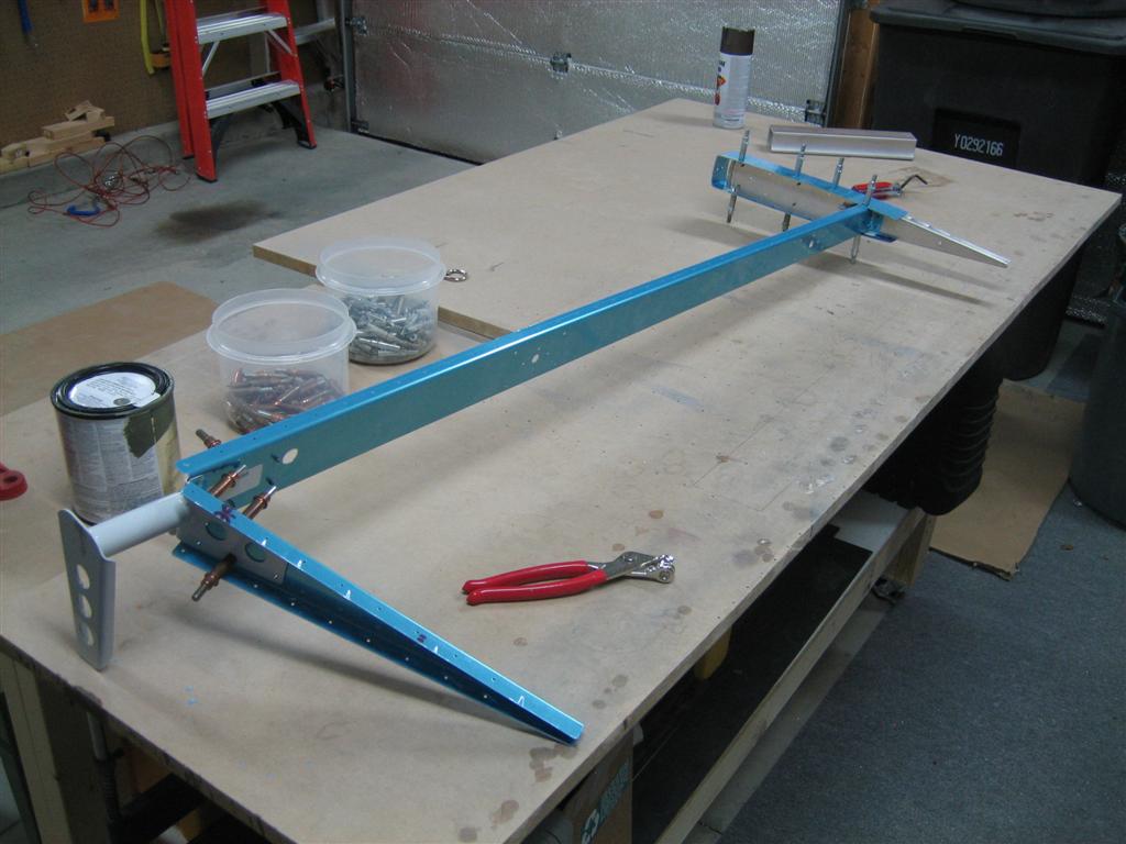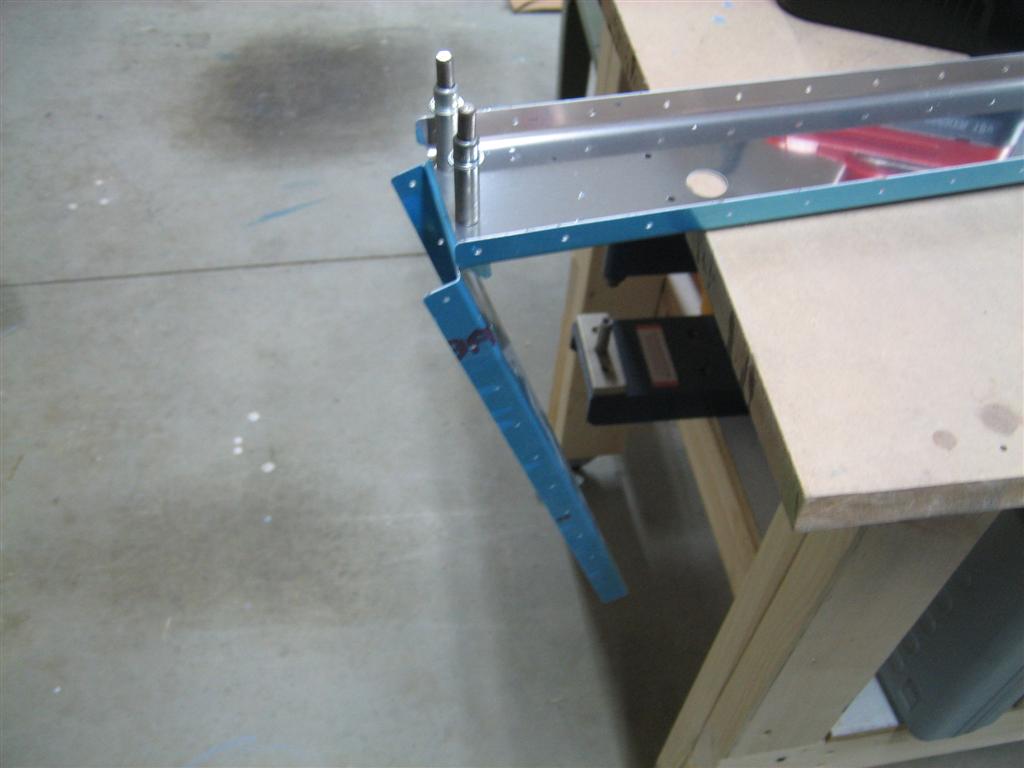 Then, I cleaned off the hinge brackets, got them clecoed to the rear spar, and clecoed the rear spar to the front spar and ribs.