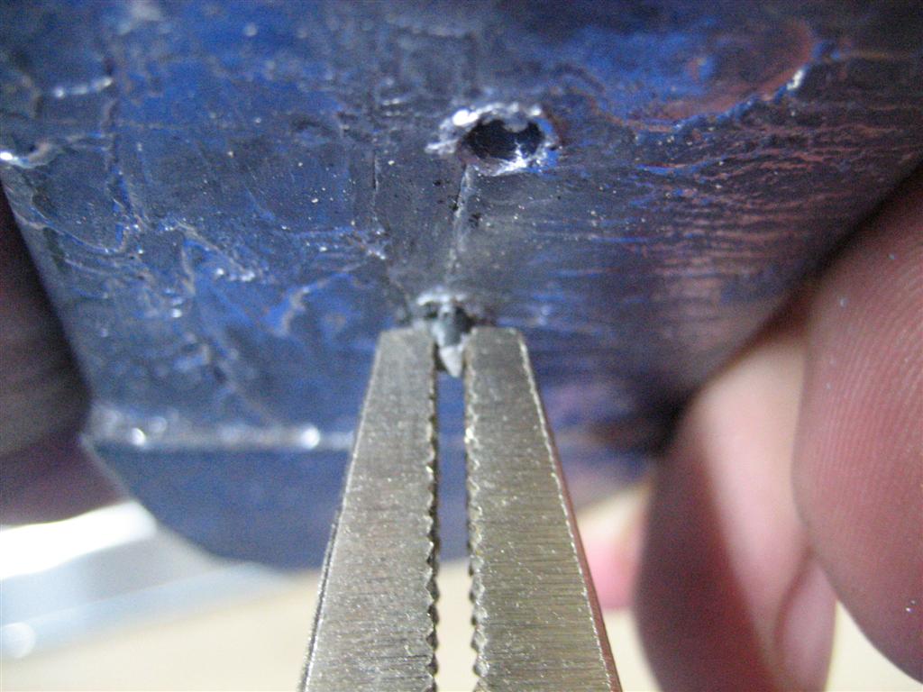 Example of brand new cleco on the left, and two used clecos in the middle. Eh, they work just fine, they're just not as pretty.