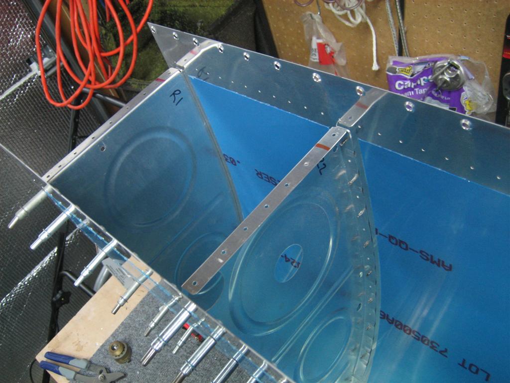 Finally, I clecoed in the root ribs (fore and aft).