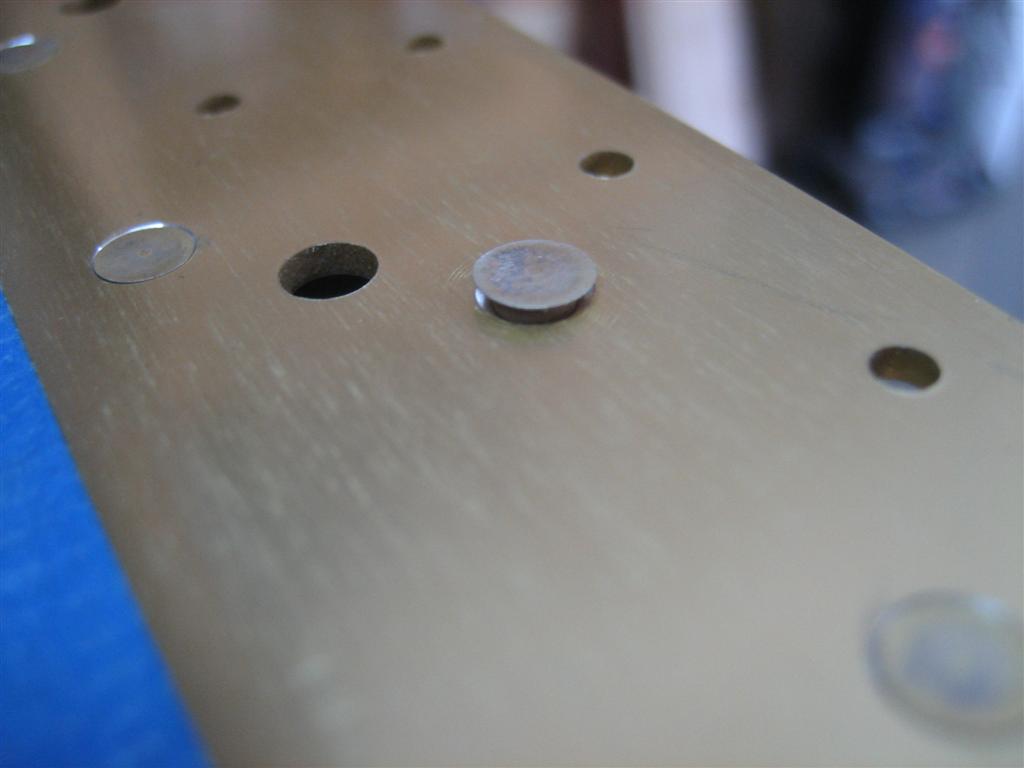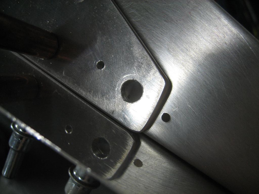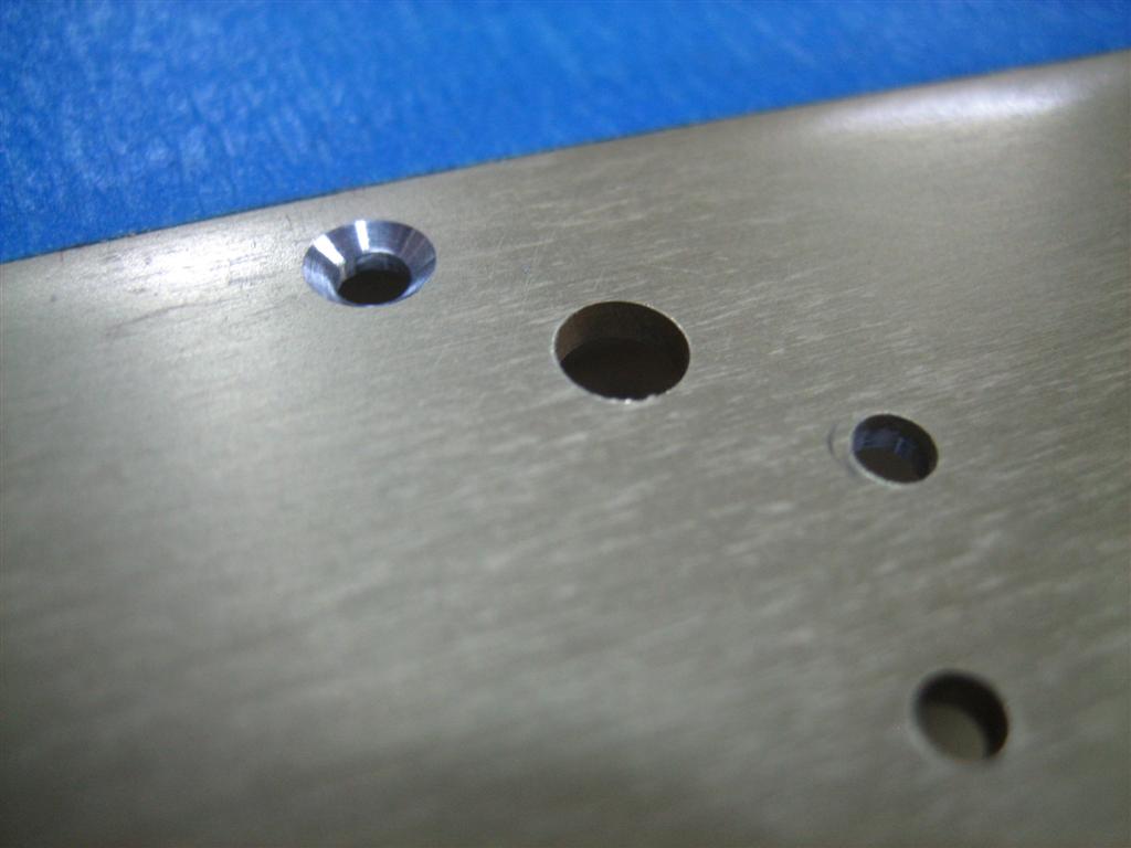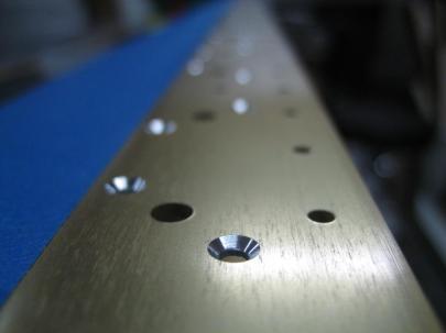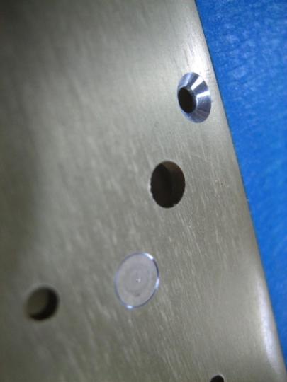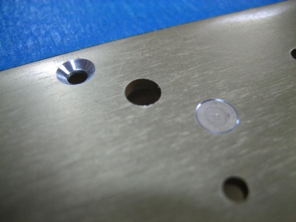…found a #28 drill, then drilled, deburred, and dimpled the four holes on each side of the VS top.
