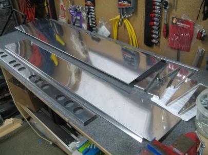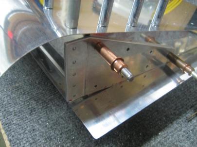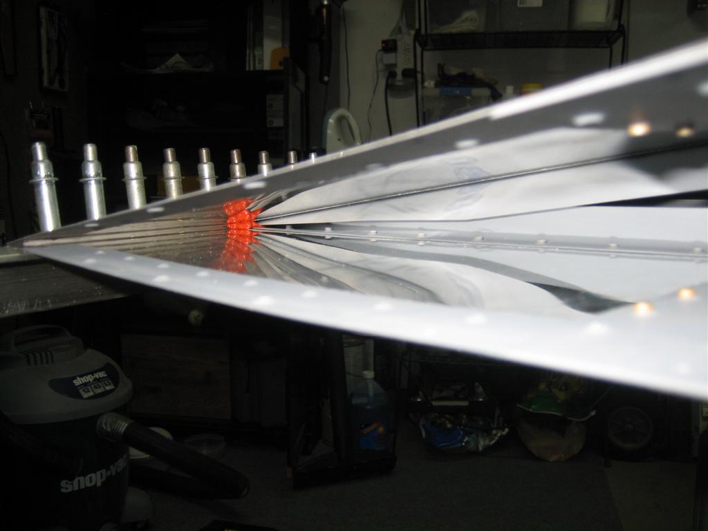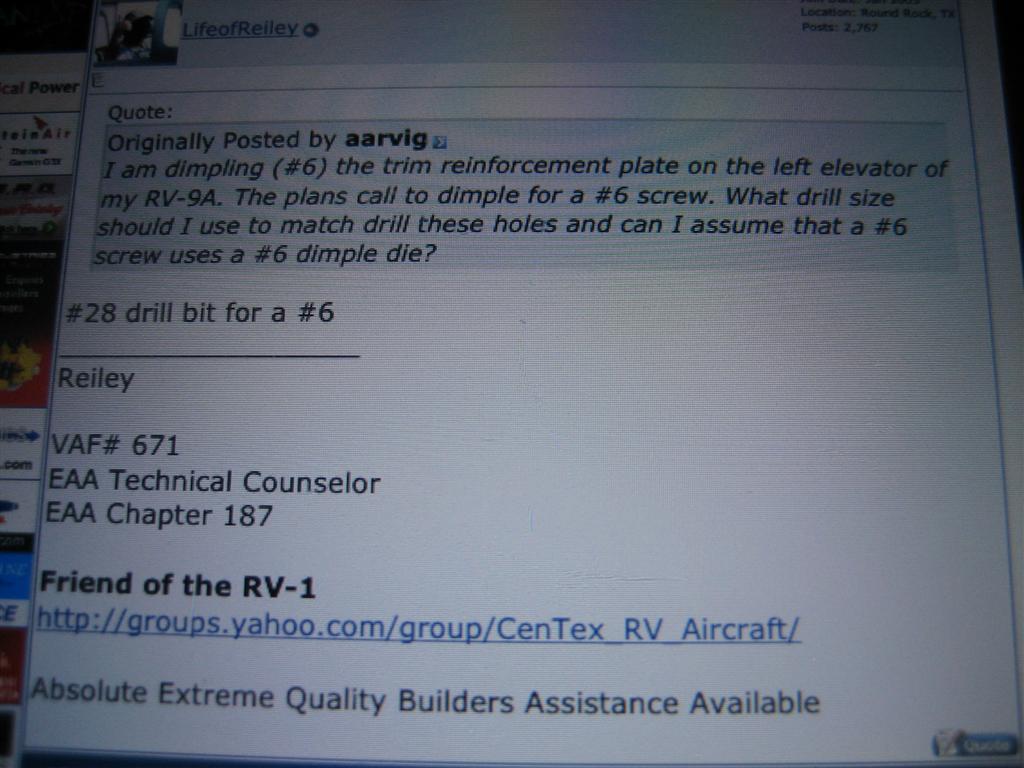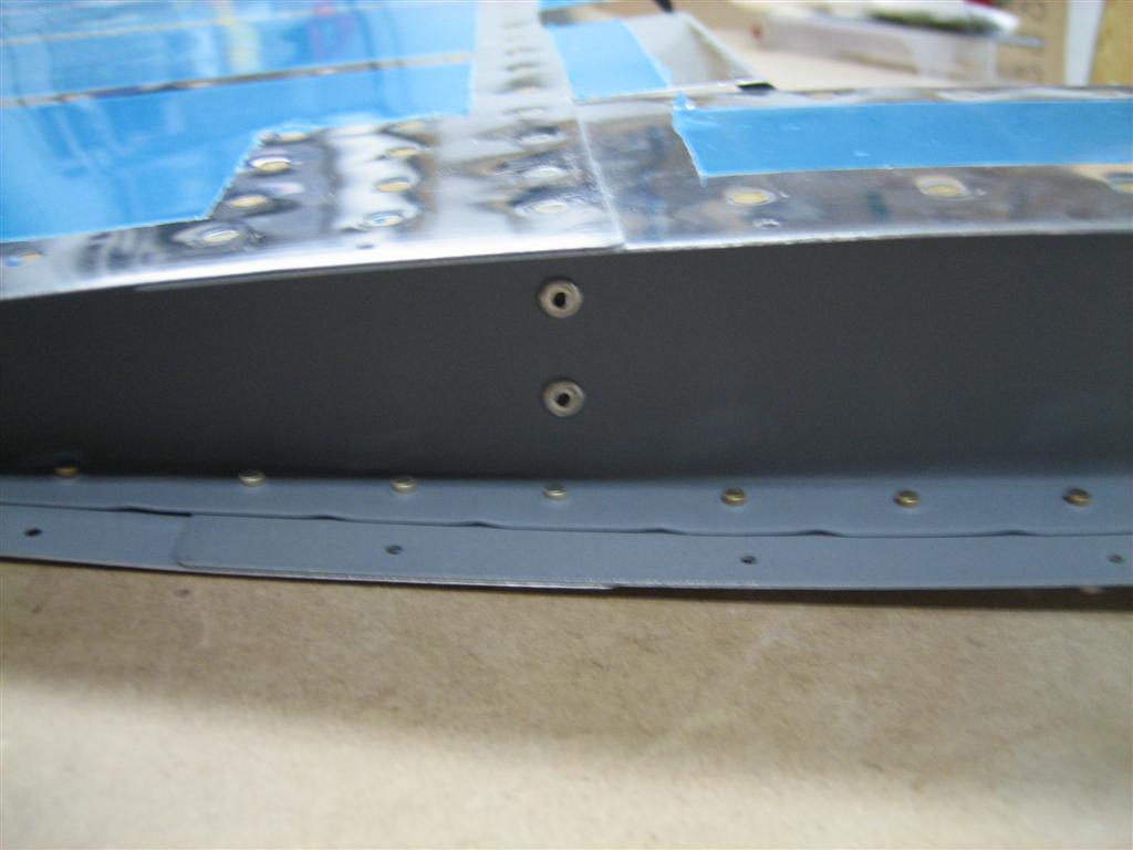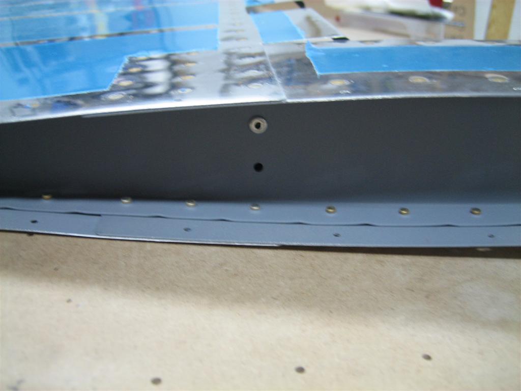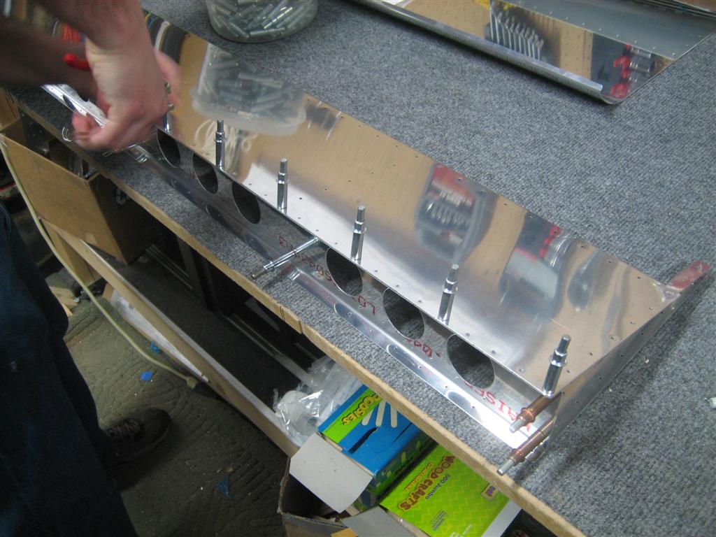 …found a #28 drill, then drilled, deburred, and dimpled the four holes on each side of the VS top.