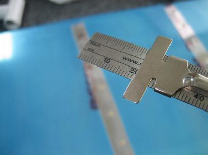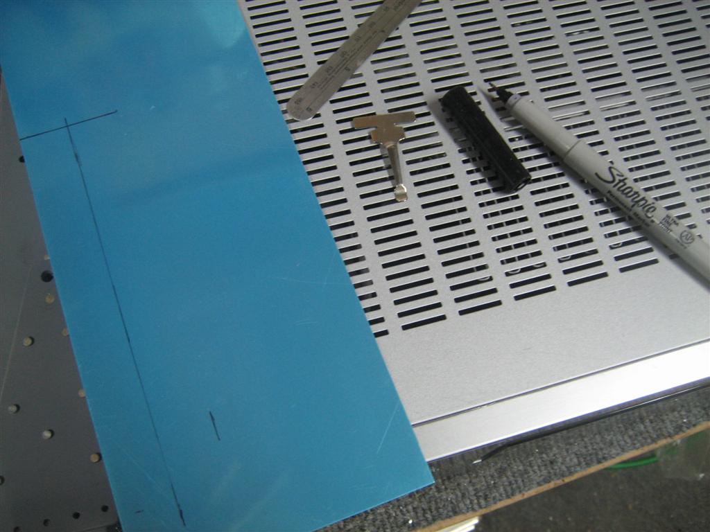 I marked up a few .025″ strips of aluminum sheet, and cut them out.