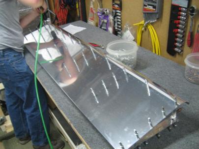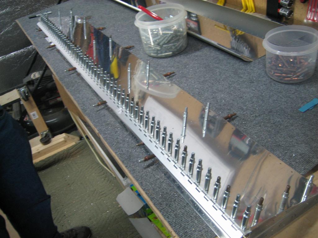After that was complete, I realized that I really wanted to sand off the gelcoat before priming etc, and that I better wait to rivet in the nutplates until that’s done as well.