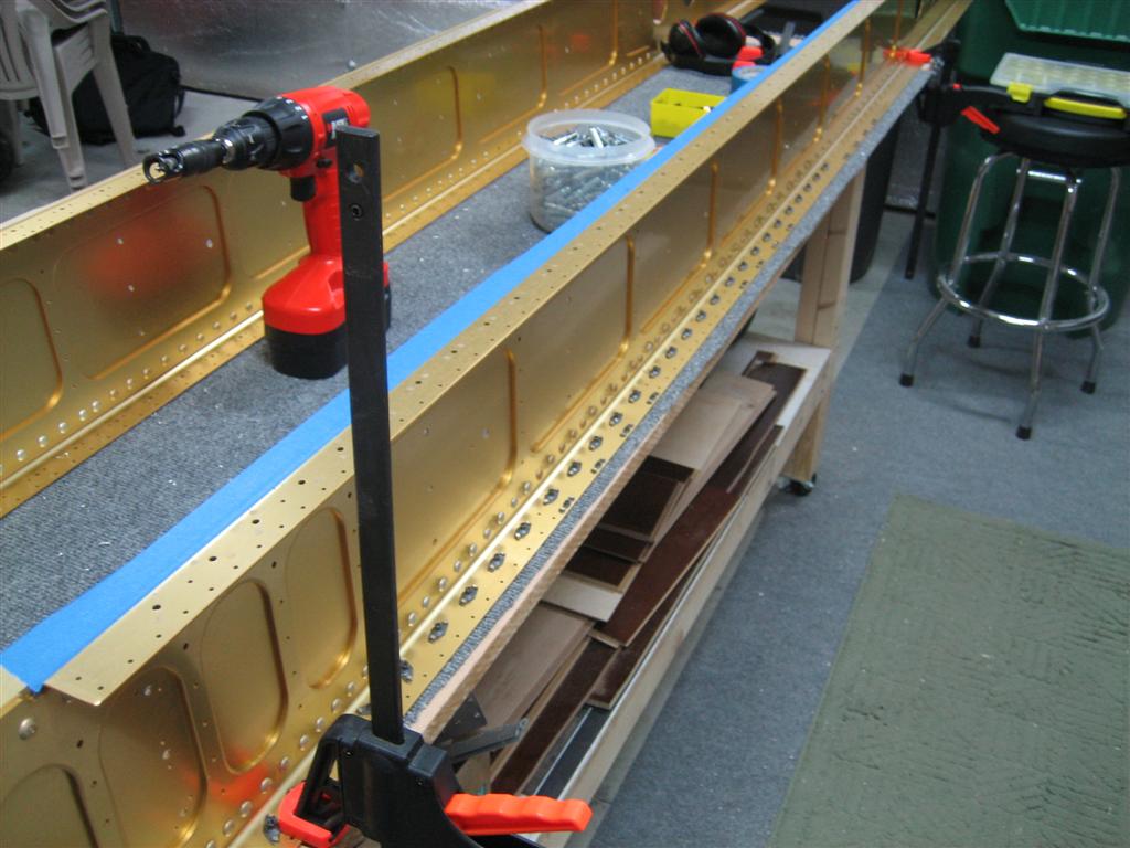 Special note here, I cut the paper off on the left edge of the following picture so I could leave the ribs clecoed in. This just meant I had to measure from the cutout instead of using arrows on the side.
