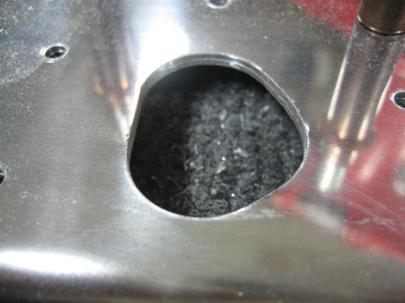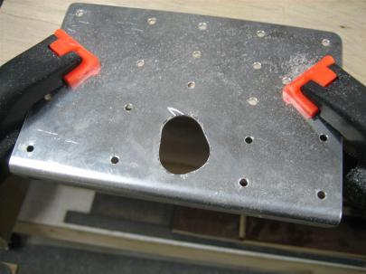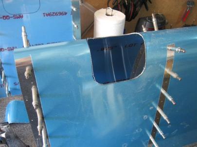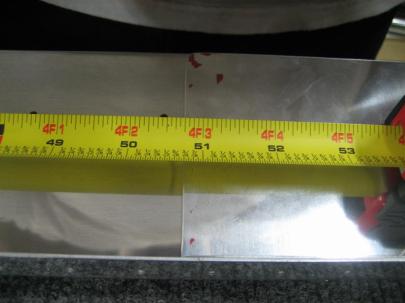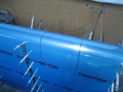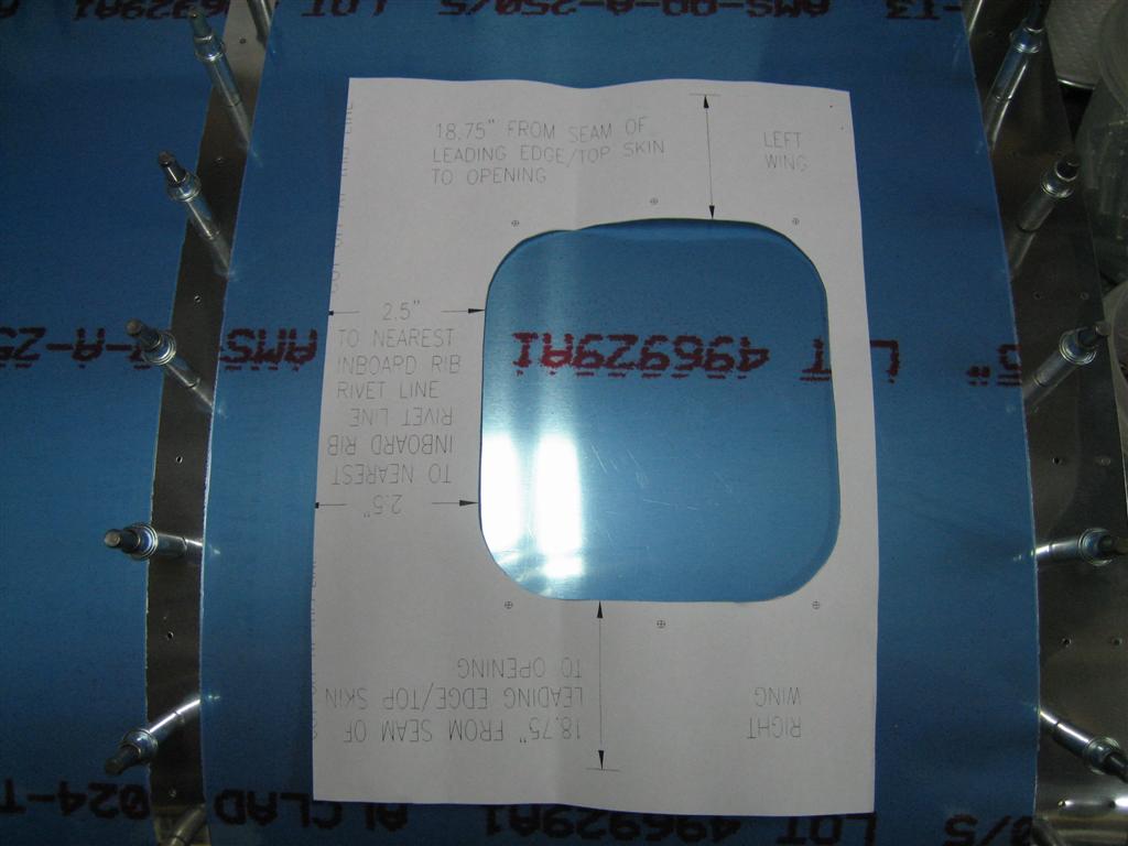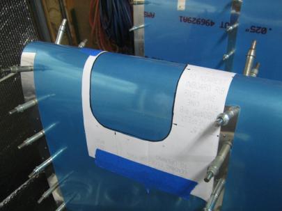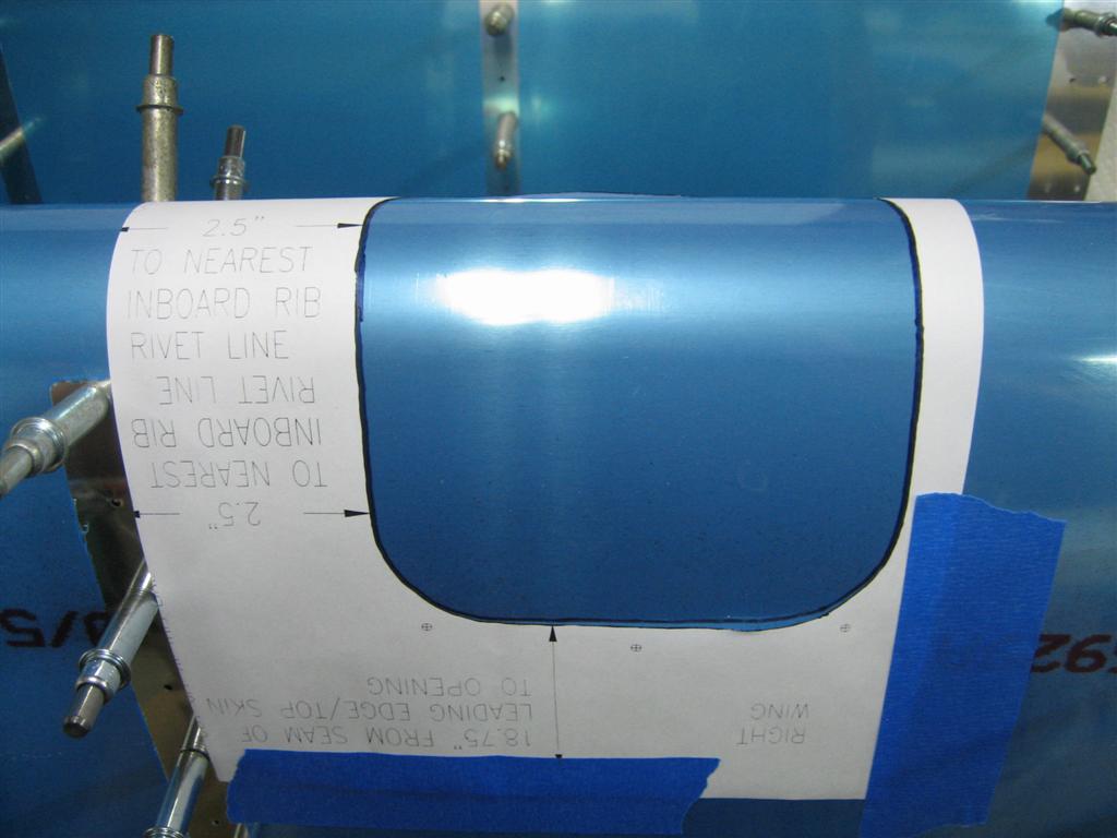 Back to the cutout, I measured the 2.5″ from the edge of the cutout to the row of rivet lines.