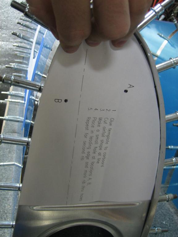 First, I cut out the rib template and used a sharpie to mark the hole locations.