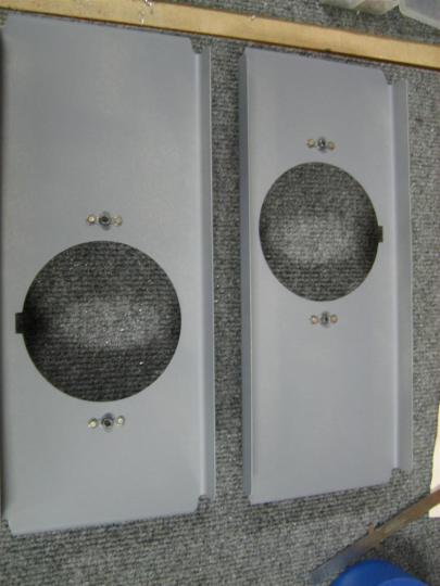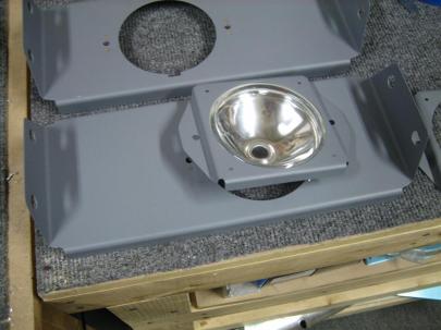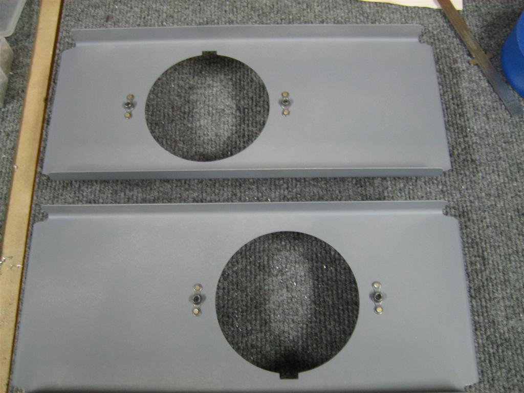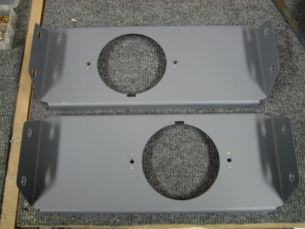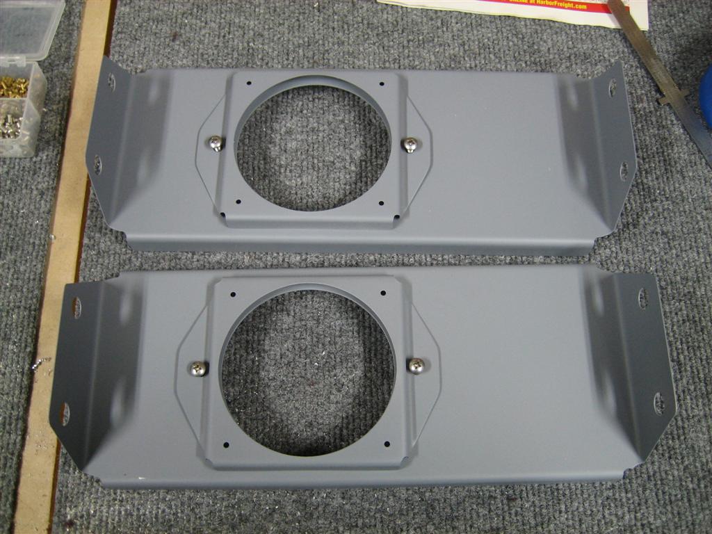 I forgot to take any pictures of the rest of the prep for the lens retainers, lamp retainers, and the mounting plates. Anyway, they got prepped, cleaned, dried, and taken outside to prime.