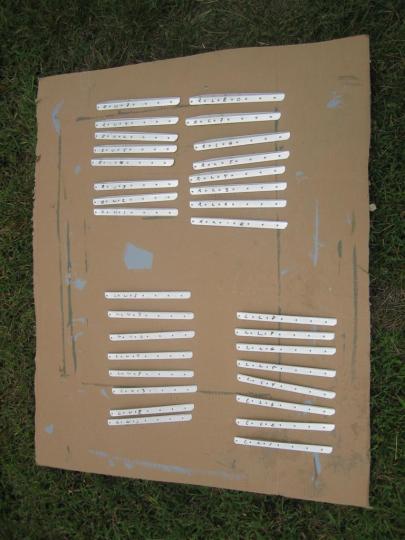 Then, I took all of my stiffeners inside to do a more thorough washing, then set them outside on a piece of cardboard for drying.