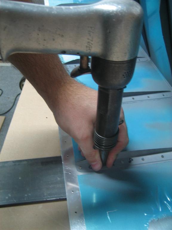 Also, remember to push down REALLY hard with your steadying hand so you minimize any tendency for the skin or stiffener to jump up. You want everything FLUSH against the backriveting plate.