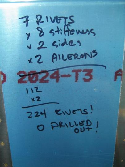 So, 2.5 hours, 224 rivets, and none drilled out.