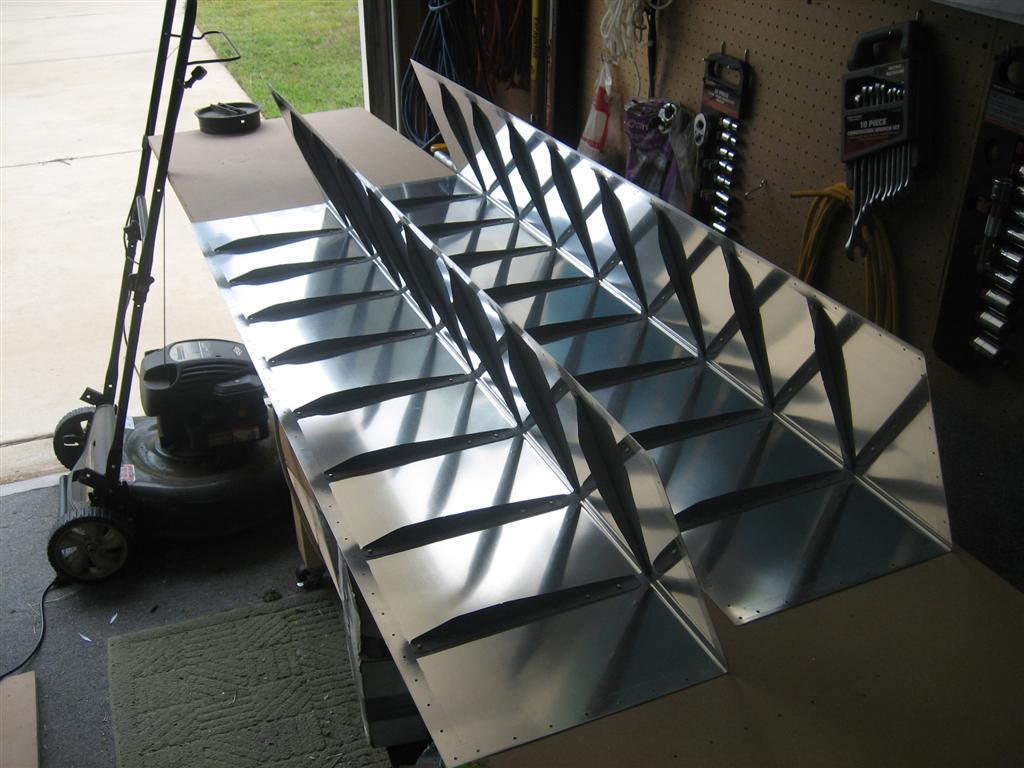 Here’s the left lower flap skin along with the ribs. I was very careful to review the plans to make sure I got all of the flanges pointing the correct way.