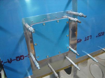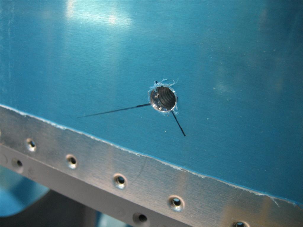 Fast forward another few minutes, and I got the flop tube installed with the -6 fitting on the inside and the nut on the outside, then I installed the vent tube (just flared) to the -4 fitting on the outside, you can see the aluminum washer and nut on the inside here. I made sure everything had a good bead of proseal around it before torquing everything down.