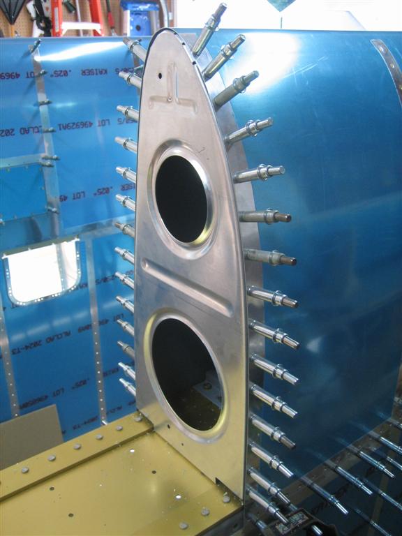 The clever readers will see the uppermost rivet on the right side is NOT SET. I caught it when I ran back outside later to count how many rivets I had set. (I knew counting rivets was a good idea.)
