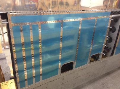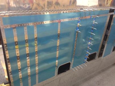 Okay, this is the outboard side. Those two AN426 rivets are just in there for hole alignment. They can NOT be set at this time, only the three on the left.