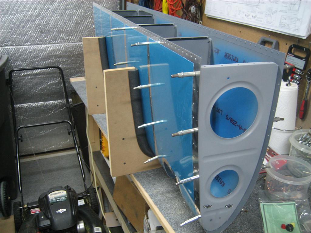 Well, this morning, the girlfriend ran some errands, and I got my house chores done early, so I headed out to the garage to make some loud noises. Recently, I’ve been taking one component at a time from drilled through primed. It make my work sessions less boring (not a full day of deburring lots of parts, but rather one day of drilling, deburring, scuffing, dimpling, cleaning, and priming one part).