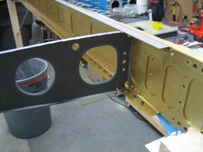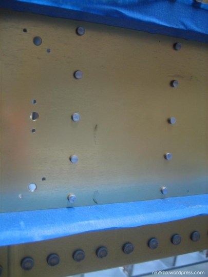 Where I left off for today. I'll figure out how to set the remaining rear spar to skin rivets sometime next week.